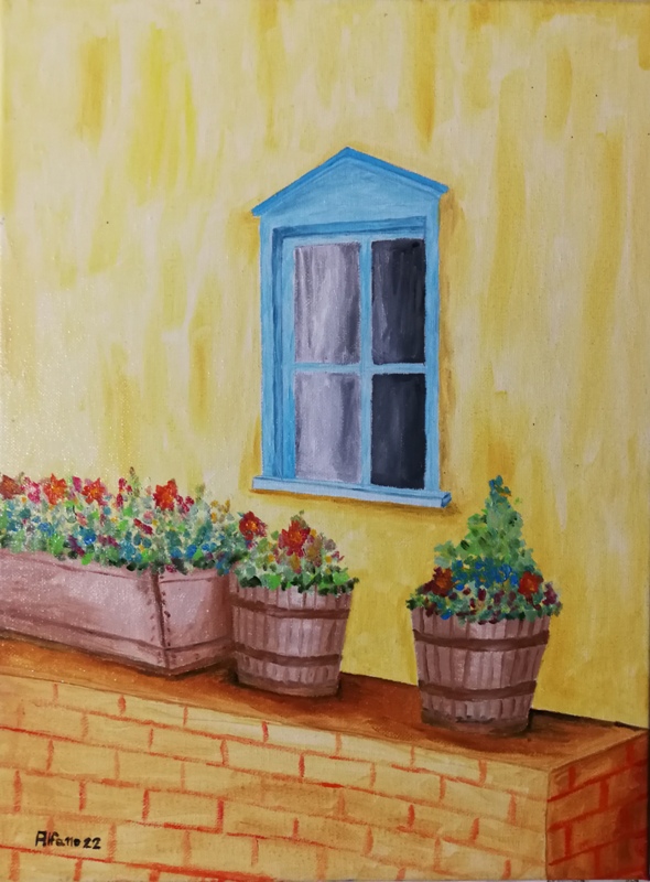 Vecchia finestra con fioriere |