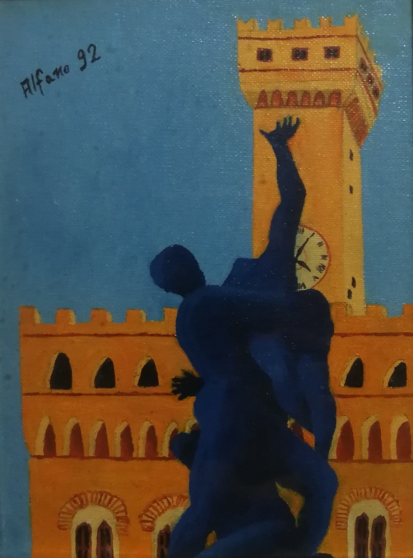 AUTORE: Alfano Antonio TITOLO OPERA: Fontana Piazza della Libertà ANNO DI REALIZZAZIONE: 1992 DIMENSIONI: Base 13 cm - Altezza 18 cm - Profondità 0,4 cm SUPPORTO E TECNICA: Cartone telato, dipinto con colori ad olio utilizzando pennelli DESCRIZIONE: Statua della fontana di Piazza della Libertà con sullo sfondo vista del Palazzo Vecchio Firenze (Italia) ANNOTAZIONI: Opera unica eseguita a mano accompagnata da certificato di autenticità DISPONIBILITA': Disponibile |